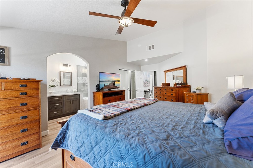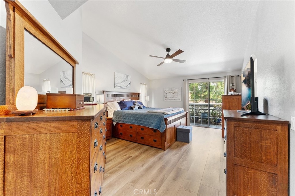 Tranquility awaits in the primary bedrooms that is spacious w/ vaulted ceilings, ceiling fan, walk in closet & a balcony that has a view of the foothills. Imagine laying down & peering at the view as you doze away to sleep. Or, make your favorite morning beverage & step outside in the morning all while being mesmerized at the beauty that surrounds.