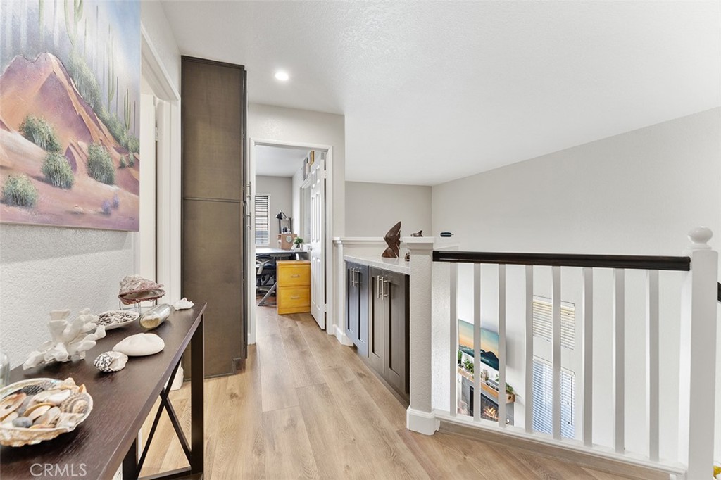 The open hallway has two areas for storing linens & household items & near the updated full bath.