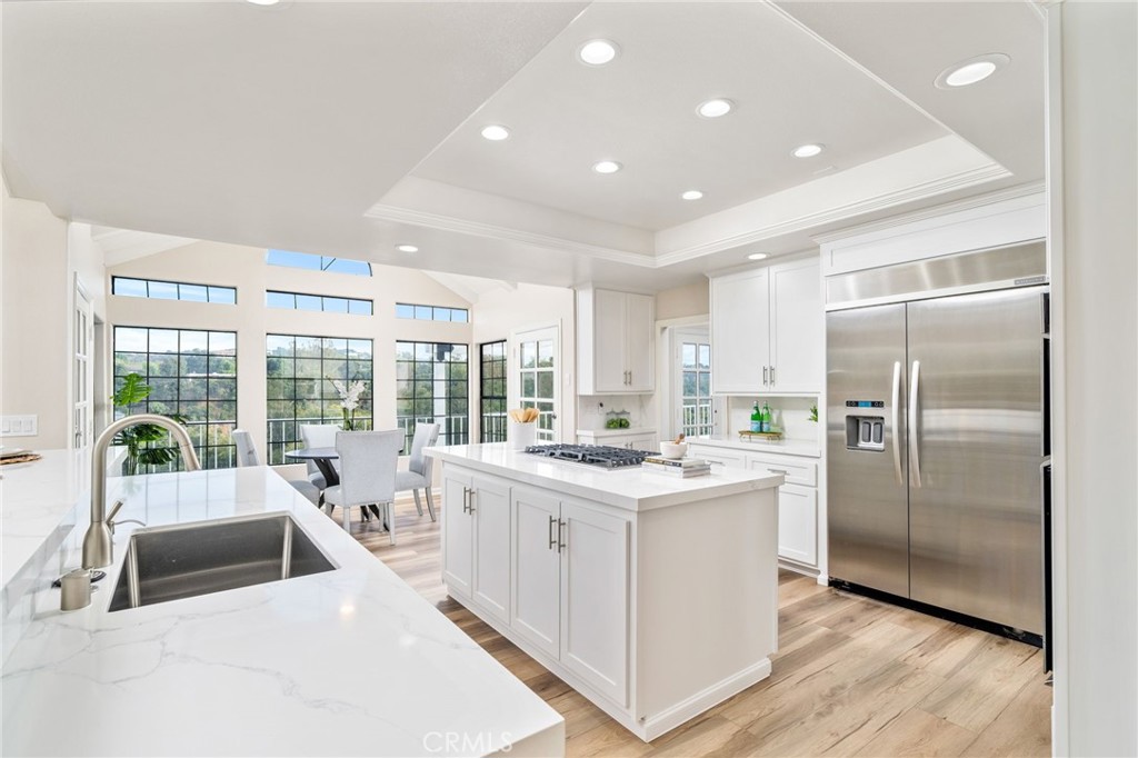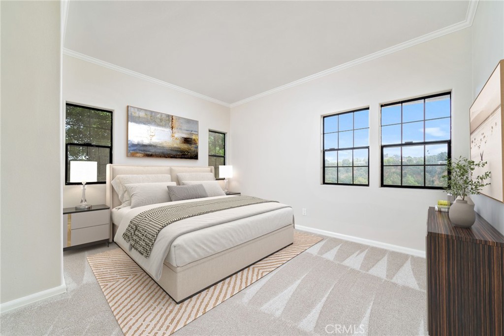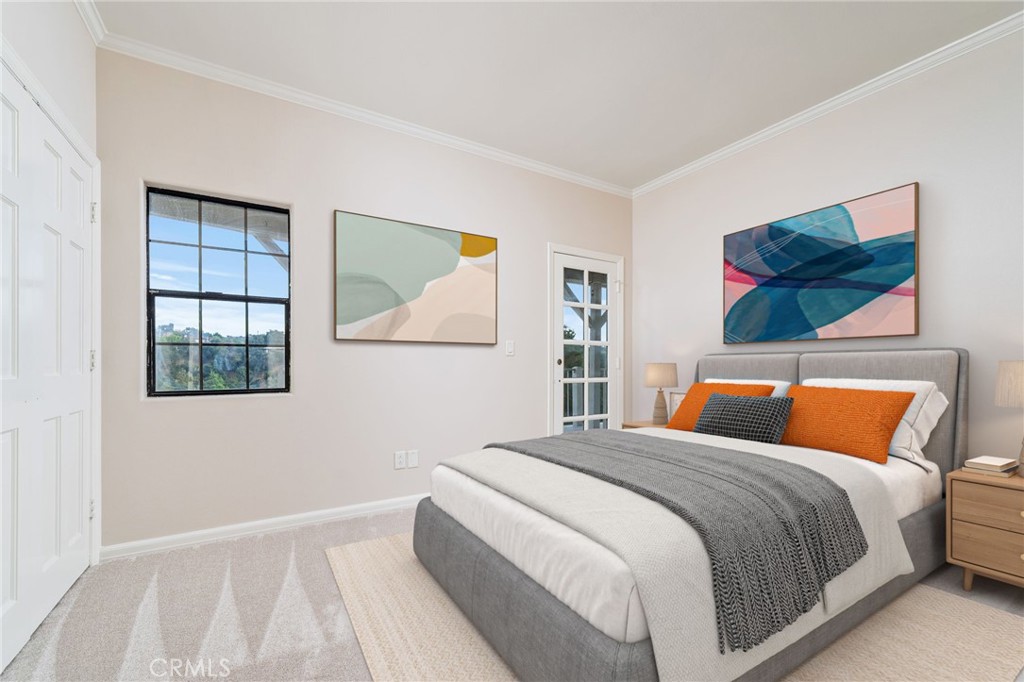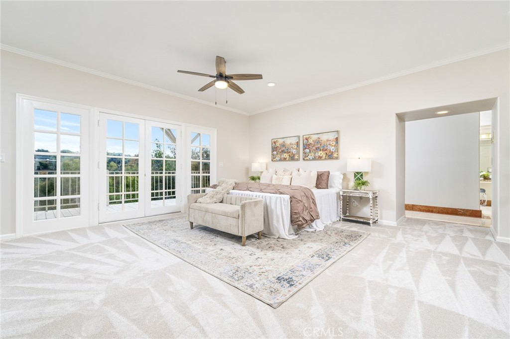 Other Interior Features: Breakfast Bar, Balcony, Crown Molding, Eat-in Kitchen, High Ceilings, Living Room Deck Attached, Open Floorplan, Pantry, Quartz Counters, Recessed Lighting, Tile Counters, Unfurnished, Bedroom on Main Level, Primary Suite