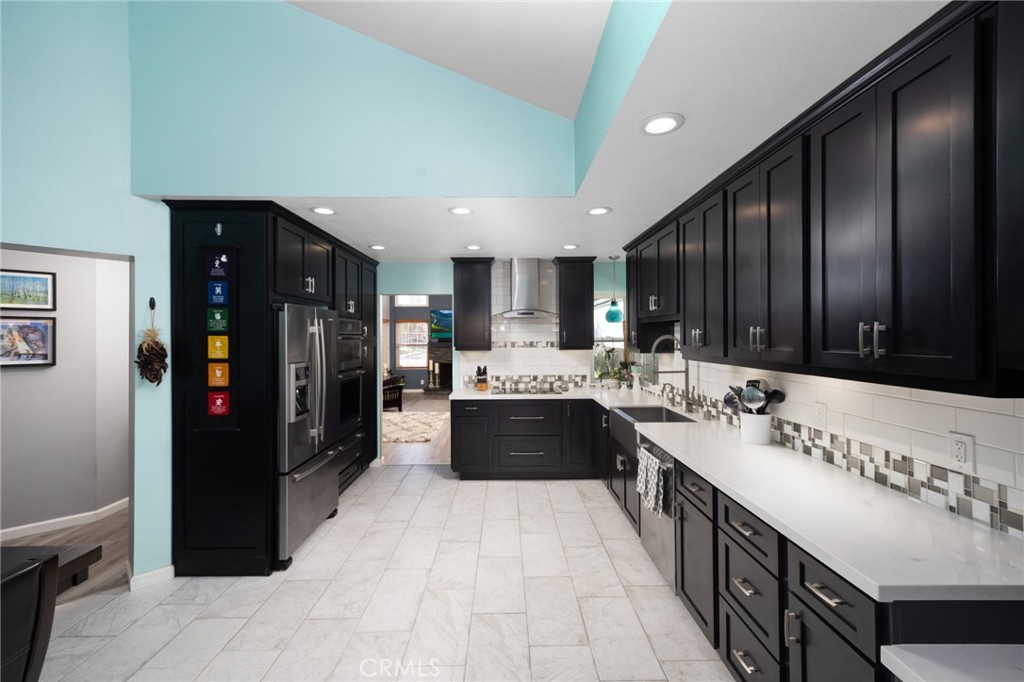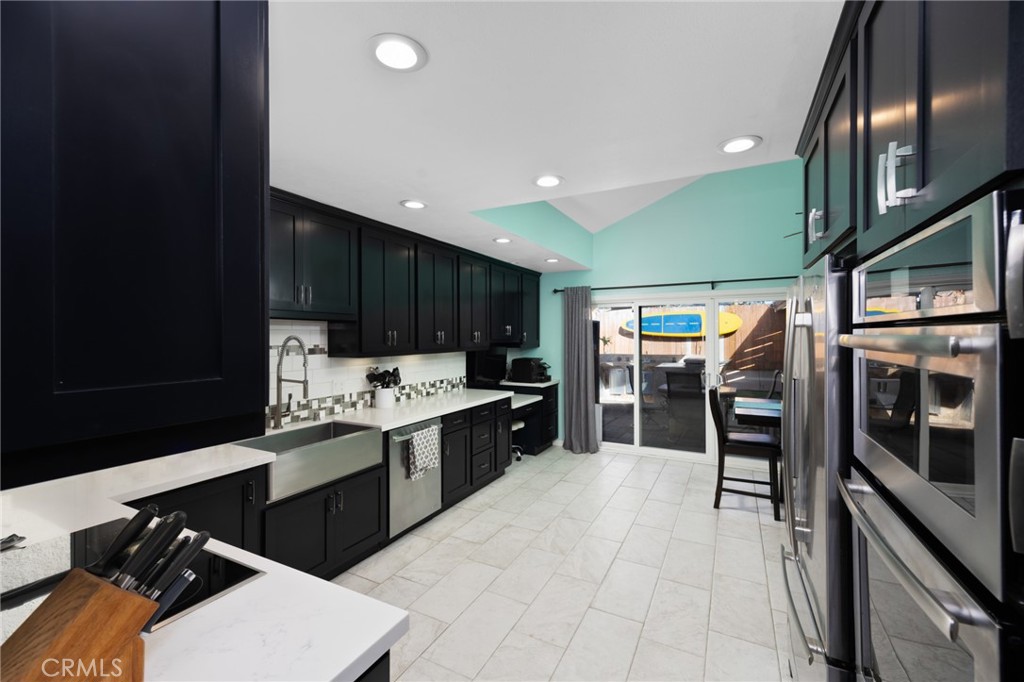 The updated kitchen features custom cabinets and premium Jenn-Air appliances, creating a stylish and functional space for cooking and entertaining.