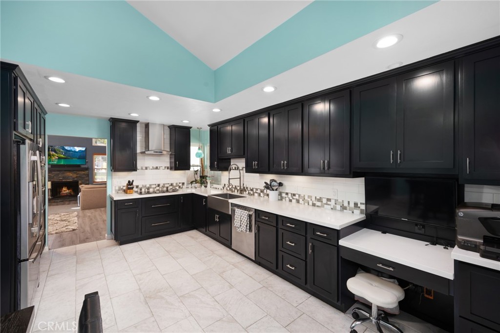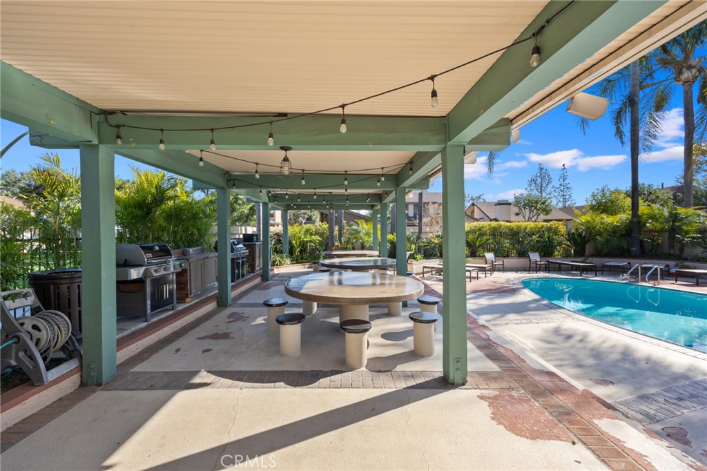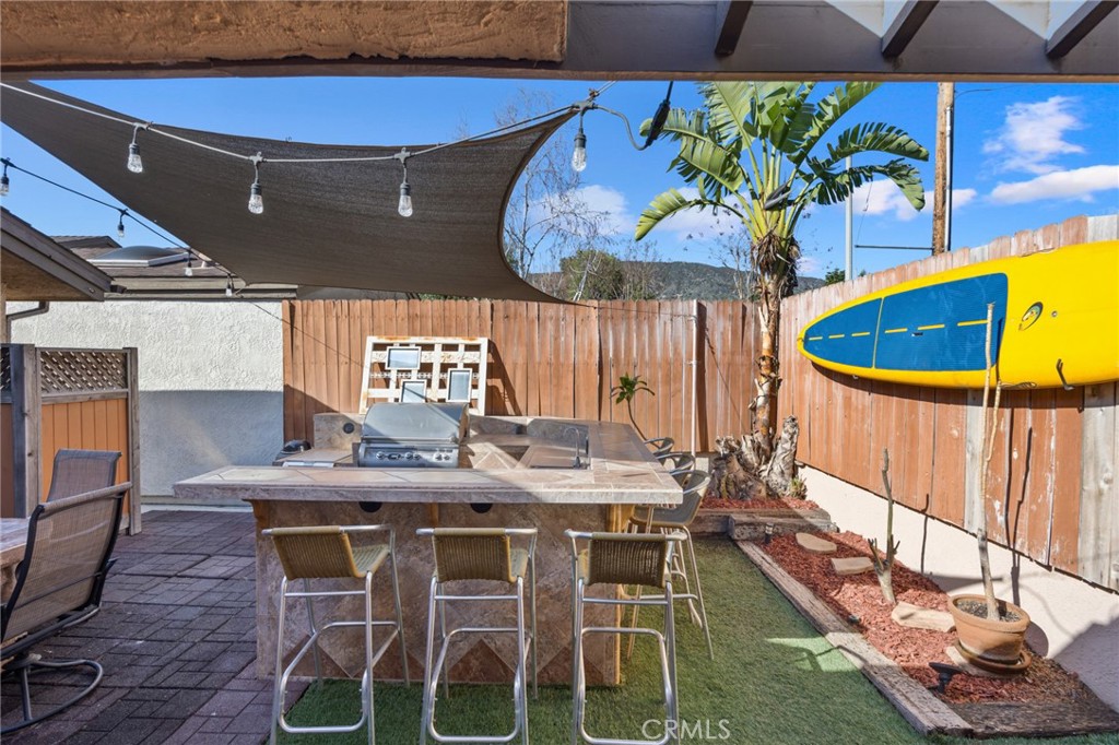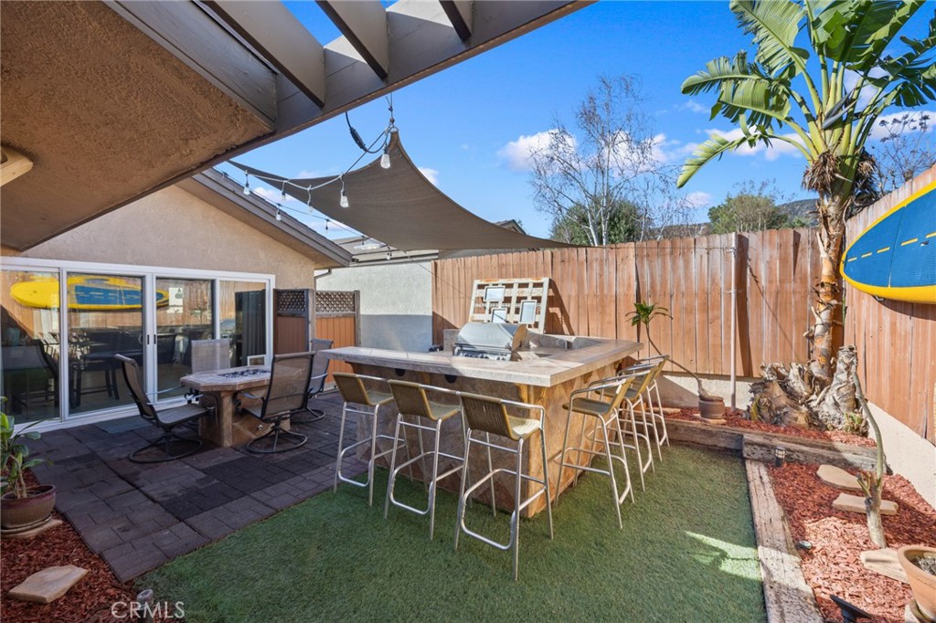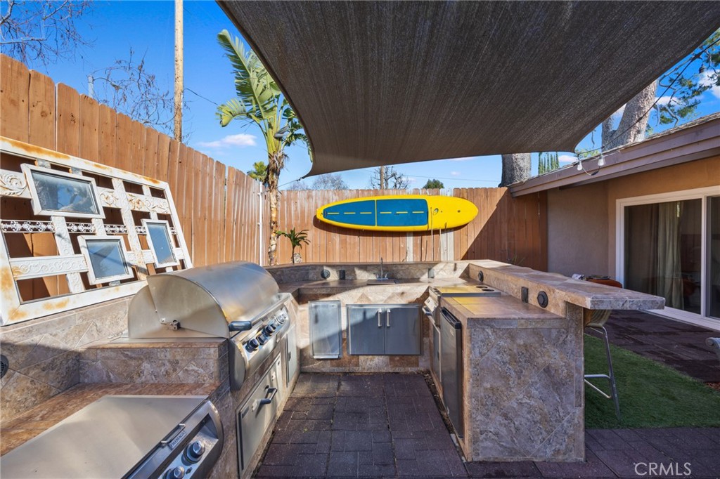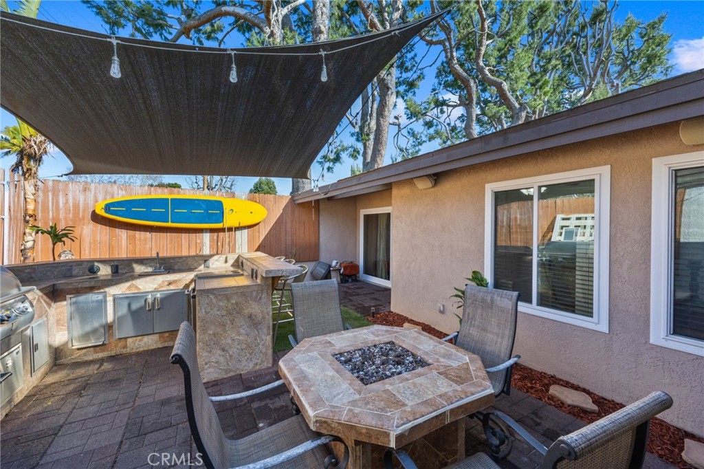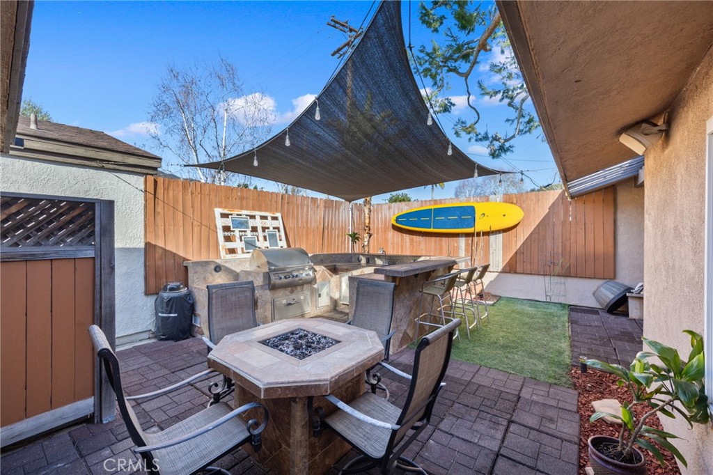 An entertainer's dream, the backyard is fully equipped with a high-end BBQ island featuring Fire Magic top-of-the-line appliances and a fire table -- all connected to natural gas, plumbing, and electricity.