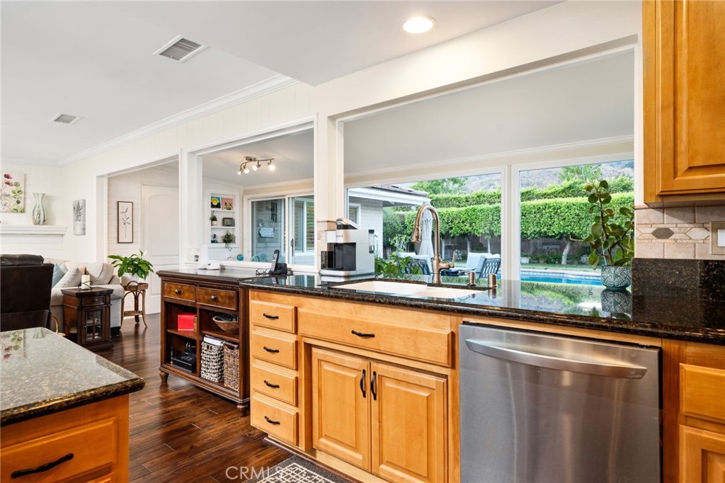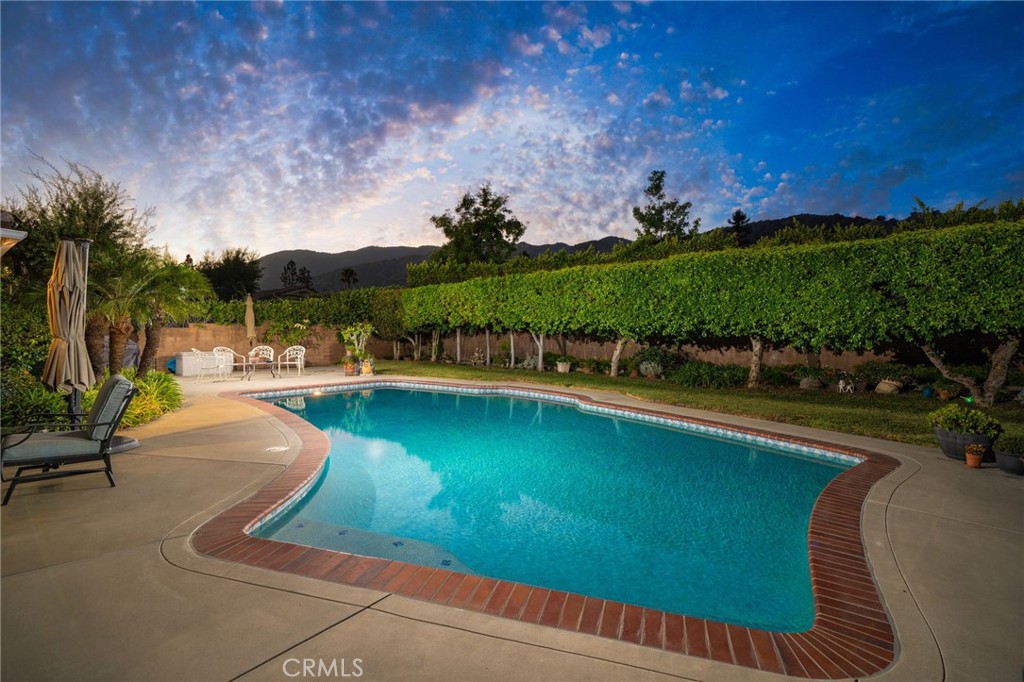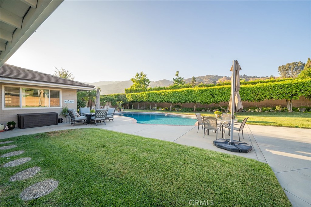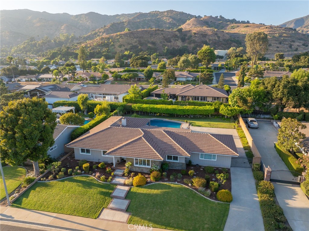 Welcome to 1245 Indian Springs Dr, a beautifully updated and meticulously maintained home nestled in the highly sought-after North Glendora Springs neighborhood. This exquisite residence, situated on the north side of the street, offers breathtaking mountain views and an inviting atmosphere. Boasting 4 bedrooms, 3 bathrooms, and 2,487 square feet of living space on a spacious 12,066 square foot lot, this home features a well-designed layout perfect for both family gatherings and serene retreats. As you enter, you're greeted by a formal entry that leads into a sunlit formal living room with front-facing windows and elegant plantation shutters. Adjacent is the formal dining area, ideal for hosting dinners. The heart of the home is the open and airy kitchen, equipped with a center island, granite countertops, and stainless-steel appliances. This space seamlessly flows into the family room, where you can enjoy stunning pool and mountain views, a cozy fireplace, and an additional sunroom room with beautiful windows showcasing the gorgeous scenery. The primary suite is a true sanctuary, featuring a spacious bedroom with ample closet space and a remodeled bathroom that includes a new dual sink vanity with quartz countertops and a modern shower. Three additional bedrooms are generously sized, and the updated hallway bathroom includes a dual sink vanity and a bathtub/shower combination. An additional remodeled bathroom with a new vanity and shower, conveniently accessible from the pool area, enhances the home's functionality. The backyard is a standout feature, offering a sparkling pool, expansive deck, and lush lawn area--perfect for entertaining and enjoying the outdoors. Recent upgrades include dual pane windows, plantation shutters, crown molding, laminate flooring, copper plumbing, an Eagle Elite tile roof, a 200 Amp electrical panel, new attic insulation, updated hardscaping in the front and backyard and new driveway and pool deck, and a refreshing pool resurfaced with Pebble Tech and new pool equipment The electric driveway gate leads to private backyard with two car attached garage with convenient access into the house, and ample space for RV/boat parking. Don't miss your chance to own this exceptional property in one of Glendora's most desirable locations. Schedule a tour today and experience the perfect blend of modern upgrades and timeless charm!