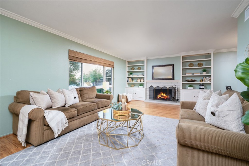 Tucked away at the end of a peaceful cul-de-sac, this beautifully updated single-story home offers the perfect blend of comfort, style, and outdoor living. Built in 1976 and lovingly maintained, this North Glendora gem features 3 spacious bedrooms, 2 bathrooms, and 1,650 square feet of living space, on a generous 8,862 square foot lot. Step through the welcoming front walkway and into a light-filled formal living room with a cozy fireplace, built-ins, and large front window that bring in the natural light. The open-concept layout includes a charming dining area and an upgraded kitchen with rich wood cabinetry, Corian countertops, and stainless-steel appliances. Adjacent to the kitchen, the inviting family room opens through sliding doors to a covered patio, perfect for indoor-outdoor entertaining. The primary suite offers a serene retreat with a walk-in closet and an updated en-suite bathroom featuring a spacious vanity and a large walk-in shower. Two additional bedrooms, one with a built-in desk, share a well-appointed hallway bathroom with a tub/shower combo. A convenient indoor laundry room with washer and dryer included adds to the home's functionality. Thoughtful upgrades include hardwood flooring, an updated 200-amp electrical panel, dual-pane windows and sliding doors, a newer composition roof, central heating and air conditioning with new ducting, and fully paid solar panels. Enjoy your own private backyard oasis with a lush lawn area, covered patio, and a gated, sparkling pool and spa--perfect for relaxing or hosting summer gatherings. The detached two-car garage is complemented by a gated driveway with ample parking. Located in a desirable neighborhood close to Glendora High School and top-rated elementary schools, this move-in ready home is a rare find in an unbeatable location. Don't miss this wonderful opportunity!