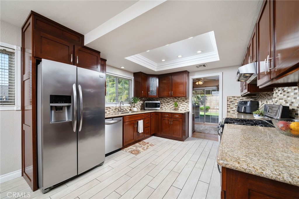Welcome to 1645 Cypress Street, an upgraded 3 bedroom, 2 bathroom home nestled in a San Dimas neighborhood within the desirable Charter Oak School District. Situated on a generous 7,658 sq ft corner lot, this charming property offers 1,452 sq ft of thoughtfully designed living space and is perfect for both indoor comfort and outdoor entertaining. Step inside to a bright and open living room with a cozy fireplace, flowing seamlessly into an updated kitchen featuring stainless steel appliances (including a gas range, dishwasher, and refrigerator), ample cabinetry, and a spacious dining area. A separate formal dining room with sliding glass doors opens directly to the covered backyard patio. The primary suite includes a walk-in closet, private access to the backyard, and an en-suite bathroom with a walk-in shower. Two additional well-sized bedrooms share a full hallway bath with a combined shower and bathtub. Upgrades include: copper plumbing, dual pane windows, recessed lighting, and laminate and tile floors, Additional storage is available in the large hallway linen closet. Enjoy the California lifestyle in the private backyard oasis, complete with a built-in BBQ with granite countertop and bar seating, a large lawn area, and a spacious covered patio--ideal for entertaining family and friends year-round. Additional features include a two-car-attached garage with direct home access and in-garage laundry hookups, plus ample driveway parking. Conveniently located near freeways, shopping, and dining, this move-in-ready home offers comfort, space, and convenience in a family-friendly neighborhood.