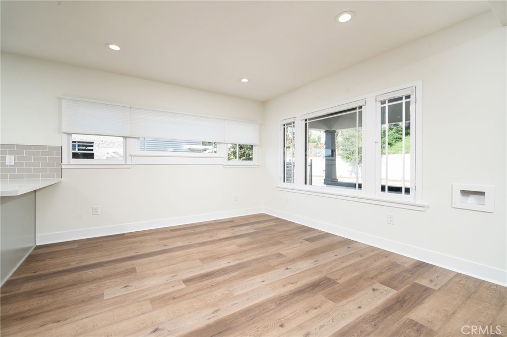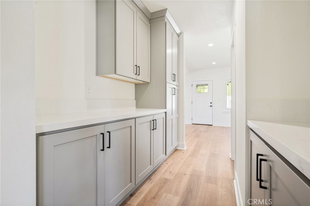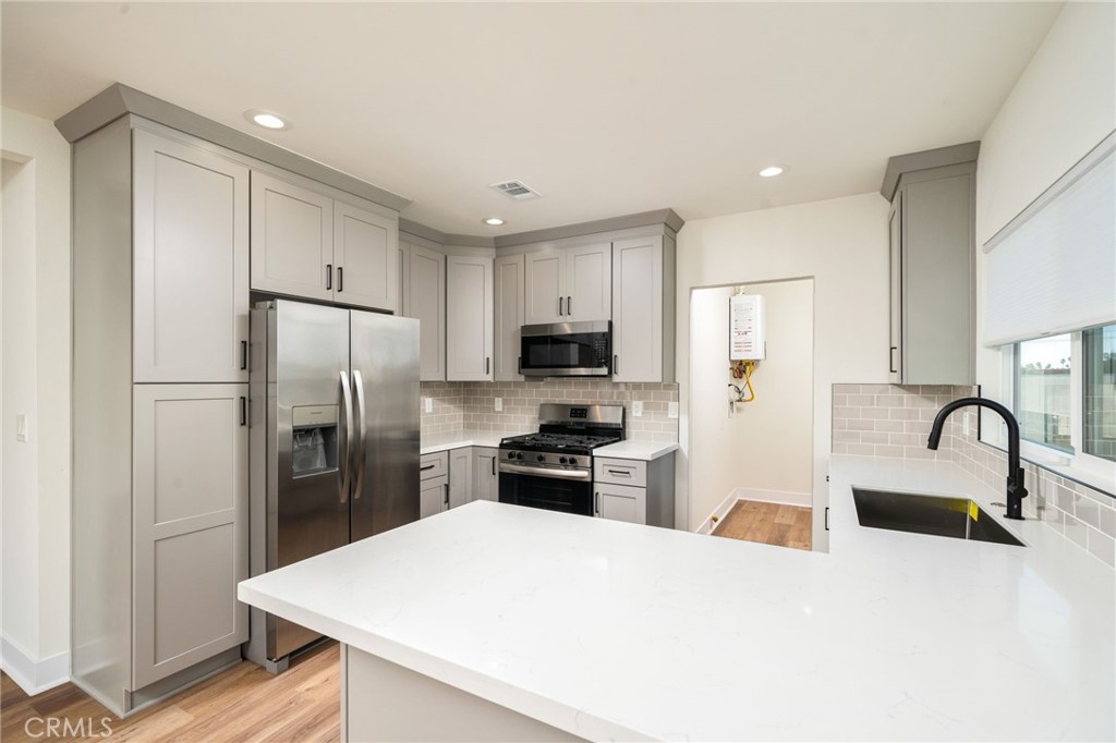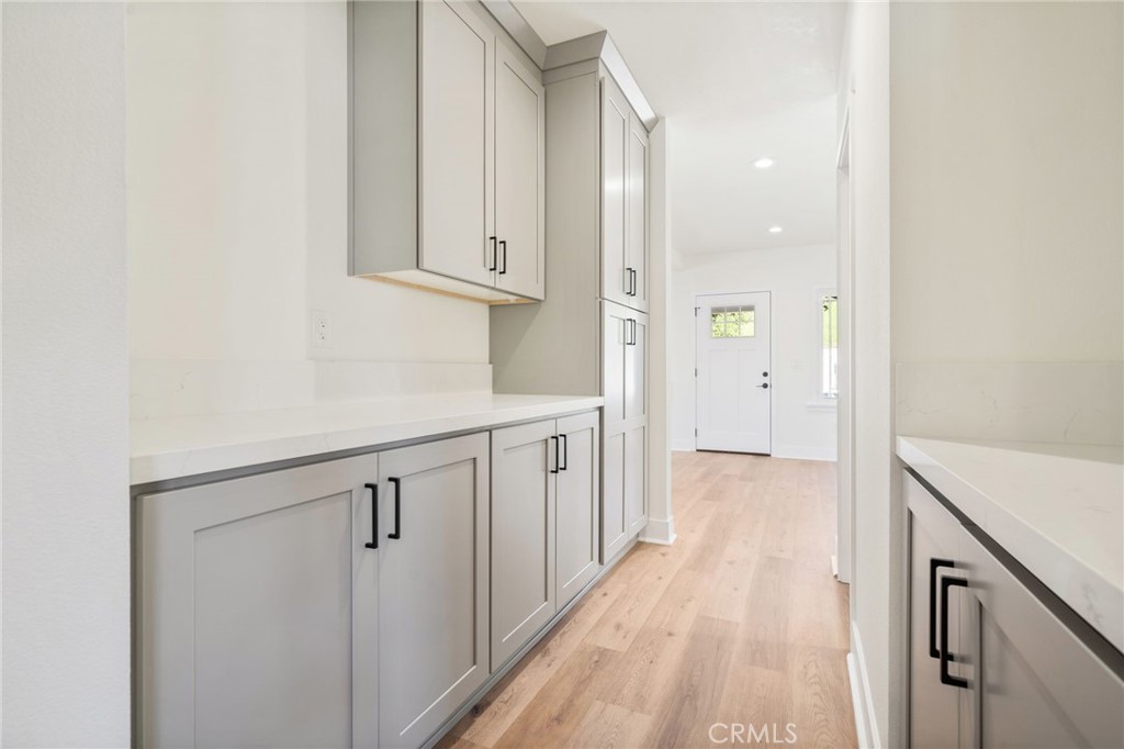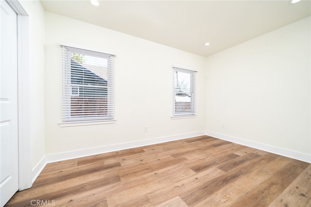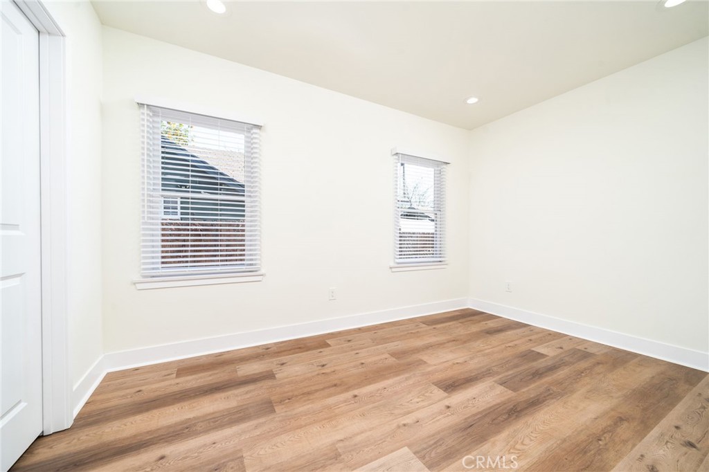 Beautifully remodeled three-bedroom, two-bathroom, 1,540 SF home situated on a spacious lot with a gated driveway and an additional detached room in the backyard--ideal for an office, playroom, gym, or extra storage. Conveniently located near downtown Pasadena, Pasadena City College, and major freeways. A charming front porch welcomes you into the light-filled living room with large front-facing windows and an open layout. The updated kitchen features new cabinetry, quartz countertops with designer backsplash, and stainless steel appliances including a gas range, dishwasher, and refrigerator. A dedicated laundry room offers direct access to the side driveway. The oversized primary suite includes a walk-in closet with custom built-ins and French doors opening to the backyard. The primary bathroom boasts a dual-sink vanity with quartz counters, a soaking tub, and a spacious walk-in shower. Two additional bedrooms offer generous closet space and share a full hallway bathroom with a shower/tub combination. Additional built-in hallway storage adds convenience. Upgrades include: new interior and exterior paint, vinyl wood flooring thru-out, raised panel interior doors, recessed lighting, tankless water heater, upgraded baseboards, interior window blinds, ceiling fans, and a newer front door. Enjoy a private, gated driveway with extra rear parking and a low-maintenance backyard and front yard finished with artificial turf, perfect for relaxing or entertaining.