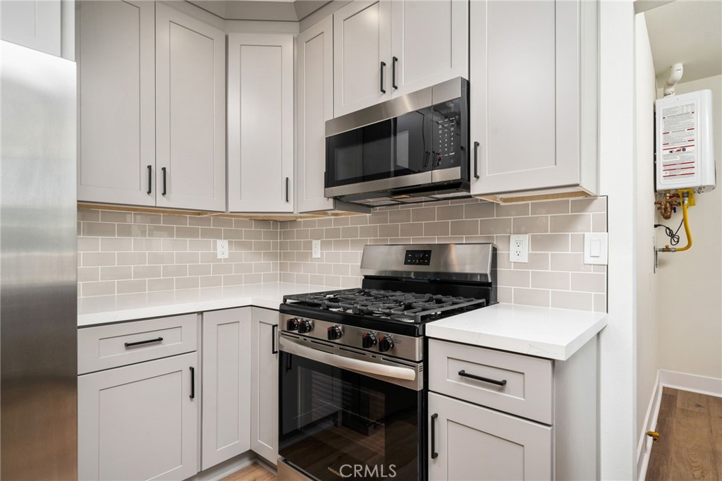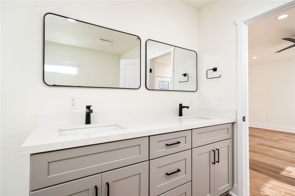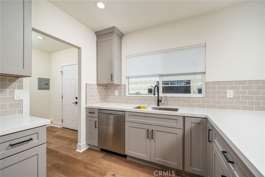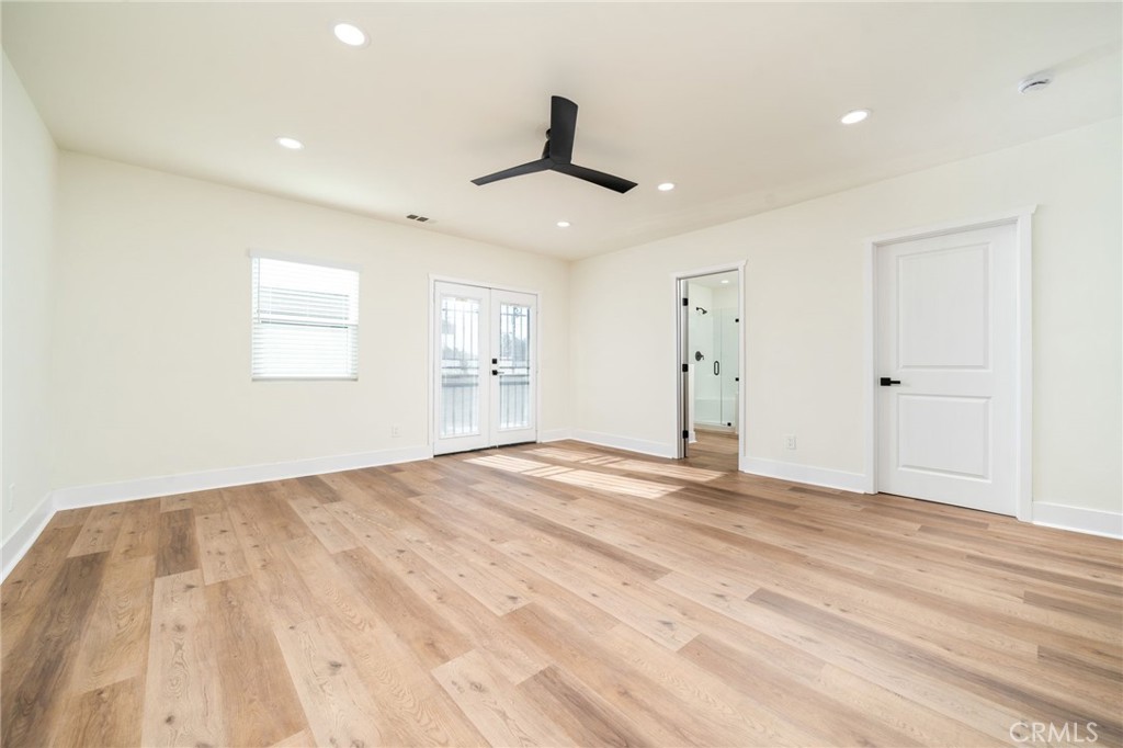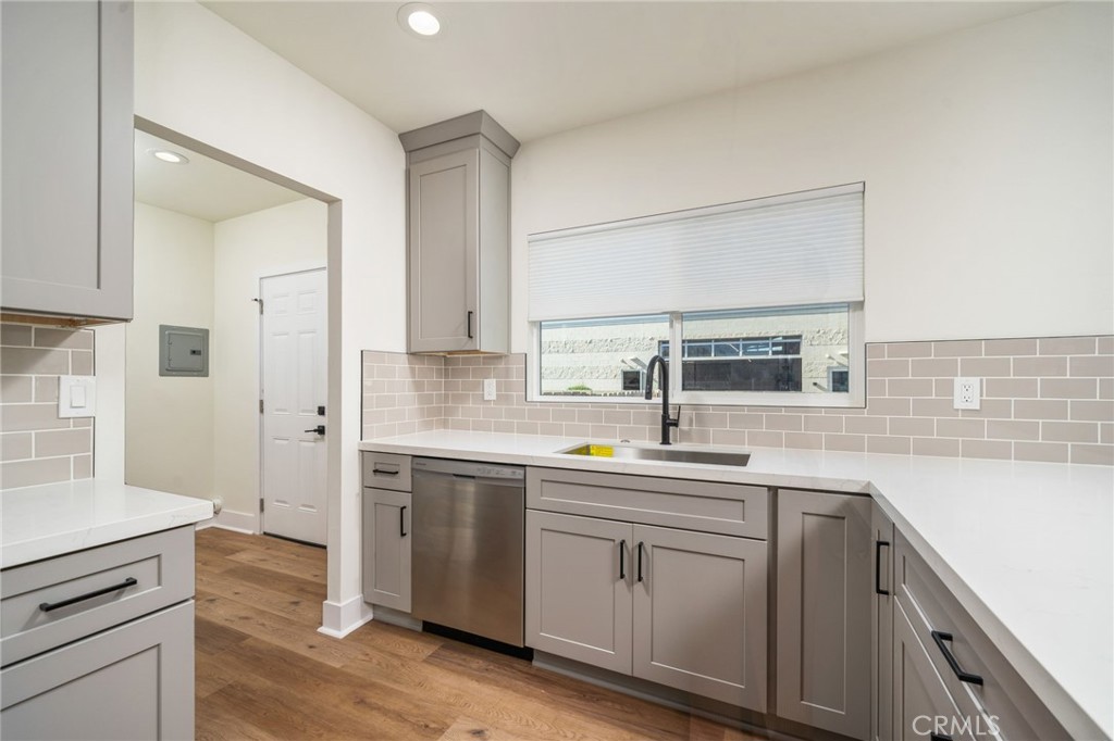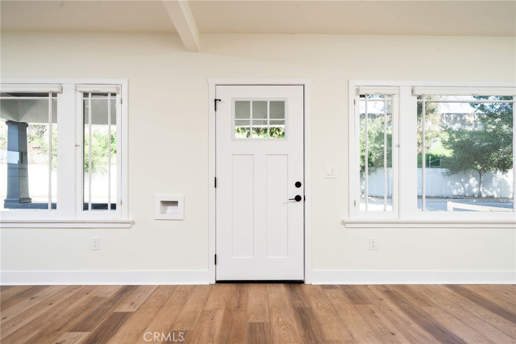 Beautifully remodeled three-bedroom, two-bathroom, 1,540 SF home situated on a spacious lot with a gated driveway and an additional detached room in the backyard--ideal for an office, playroom, gym, or extra storage. Conveniently located near downtown Pasadena, Pasadena City College, and major freeways. A charming front porch welcomes you into the light-filled living room with large front-facing windows and an open layout. The updated kitchen features new cabinetry, quartz countertops with designer backsplash, and stainless steel appliances including a gas range, dishwasher, and refrigerator. A dedicated laundry room offers direct access to the side driveway. The oversized primary suite includes a walk-in closet with custom built-ins and French doors opening to the backyard. The primary bathroom boasts a dual-sink vanity with quartz counters, a soaking tub, and a spacious walk-in shower. Two additional bedrooms offer generous closet space and share a full hallway bathroom with a shower/tub combination. Additional built-in hallway storage adds convenience. Upgrades include: new interior and exterior paint, vinyl wood flooring thru-out, raised panel interior doors, recessed lighting, tankless water heater, upgraded baseboards, interior window blinds, ceiling fans, and a newer front door. Enjoy a private, gated driveway with extra rear parking and a low-maintenance backyard and front yard finished with artificial turf, perfect for relaxing or entertaining.