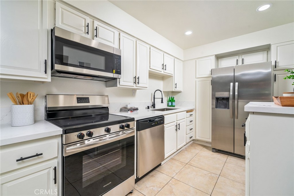 Welcome to this beautifully updated and remodeled 3-bedroom, 2.5-bathroom end unit condo offering 1,396 sq ft of stylish living space in the highly sought-after North Towne Park Circle Community, part of the award-winning Claremont School District. Step through a private walkway into a light-filled, open floor plan featuring a spacious living room with vaulted ceilings, rich laminate wood flooring, a cozy fireplace, and sliding glass doors that open to your own private patio, perfect for relaxing or al fresco dining. The adjacent open-concept kitchen is a chef's delight with white cabinetry, sleek quartz countertops, and brand-new stainless steel appliances. A convenient powder room and generous under-stair storage complete the main level. Upstairs, you'll find a spacious primary suite with vaulted ceilings, a large mirrored walk-in closet, and a beautifully remodeled en-suite bath featuring a tub/shower combination and a quartz-topped vanity. Two additional generously sized bedrooms, both with vaulted ceilings, share a full hallway bathroom, along with a spacious linen closet for added convenience. Recent upgrades include: fresh interior paint, recessed lighting, dual-pane windows, laminate flooring throughout, quartz countertops in kitchen and bathrooms, and new stainless steel kitchen appliances. Enjoy the large, private patio space and the convenience of a two-car attached garage with direct access and in-garage laundry facilities. The community offers lush greenbelts, a sparkling pool, and a relaxing spa. Ideally located near the Claremont Colleges, Claremont Village's shops and dining, and with easy freeway access--this turnkey home combines comfort, style, and an unbeatable location.