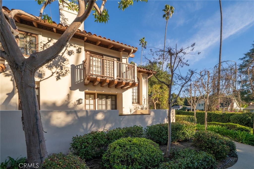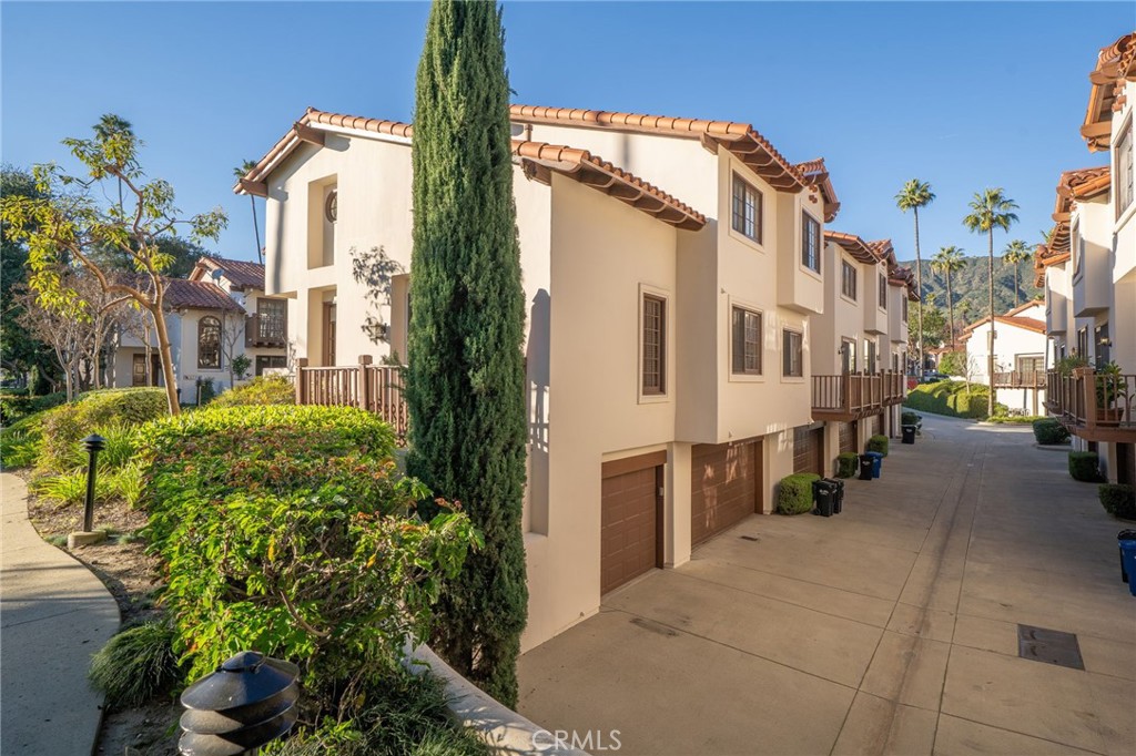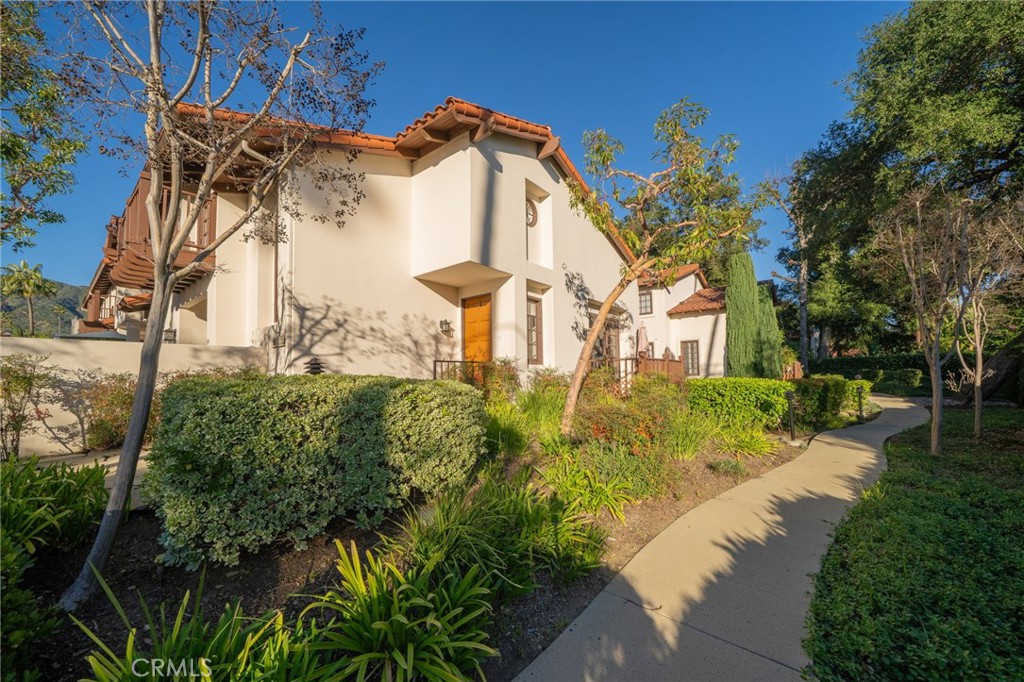 A rare opportunity to own in Glendora's most sought-after gated community, Rancho Del Bougainvillea. Ideally located in North Glendora, just moments from downtown Glendora Village, local parks, and within the award-winning Glendora Unified School District. This prestigious community is known for its charming Spanish architecture, meandering walkways, lush greenbelts, and impeccably maintained grounds. This private residence is one of the largest floor plans in the community, offering 2,558 square feet of living space with three bedrooms, three bathrooms, a versatile bonus room (ideal as a fourth bedroom or office), and a spacious three-car attached garage. A scenic walkway leads to the front door and into the main level, featuring a generous living room with a cozy fireplace, crown molding, hardwood floors, and French doors opening to a private front patio. The formal dining area is perfect for entertaining. The large kitchen includes tile countertops, painted cabinetry, gas cooktop and oven, microwave, dishwasher, and a separate dining nook. Enjoy the cozy family room with beautiful wood French doors that open to an outdoor deck with stunning views, and an adjacent powder room for guests on the main level you will also find a convenient laundry room. Upstairs offers a charming loft and a spacious primary suite with double-door entry, private balcony, walk-in closet, and a remodeled primary bathroom featuring a custom shaker-style dual vanity with Corian countertops, oversized shower, and built-in storage. Two additional upstairs bedrooms offer mirrored closet doors, including one with a delightful window seat, plus a full hallway bathroom with tub and shower. The lower level features a large bonus room with a closet and direct garage access, perfect for a fourth bedroom, home office, or additional living space. Additional upgrades include: hardwood flooring, crown molding, wood blinds and shutters, newer A/C condenser, and newer water heater. The three-car attached garage provides ample storage and direct access to the home. Community amenities include a private front gate, rear access gate, beautifully landscaped greenbelts, and a resort-style pool and spa. All within walking distance to Glendora Village's charming shops, restaurants, and nearby parks. This exceptional home truly has it all, don't miss it.