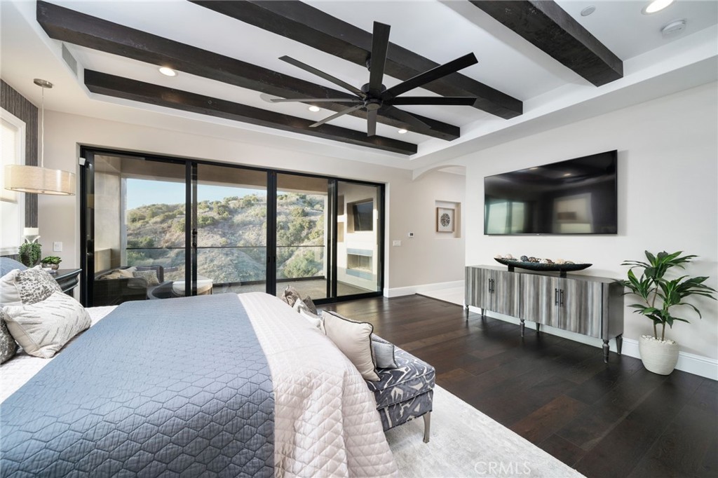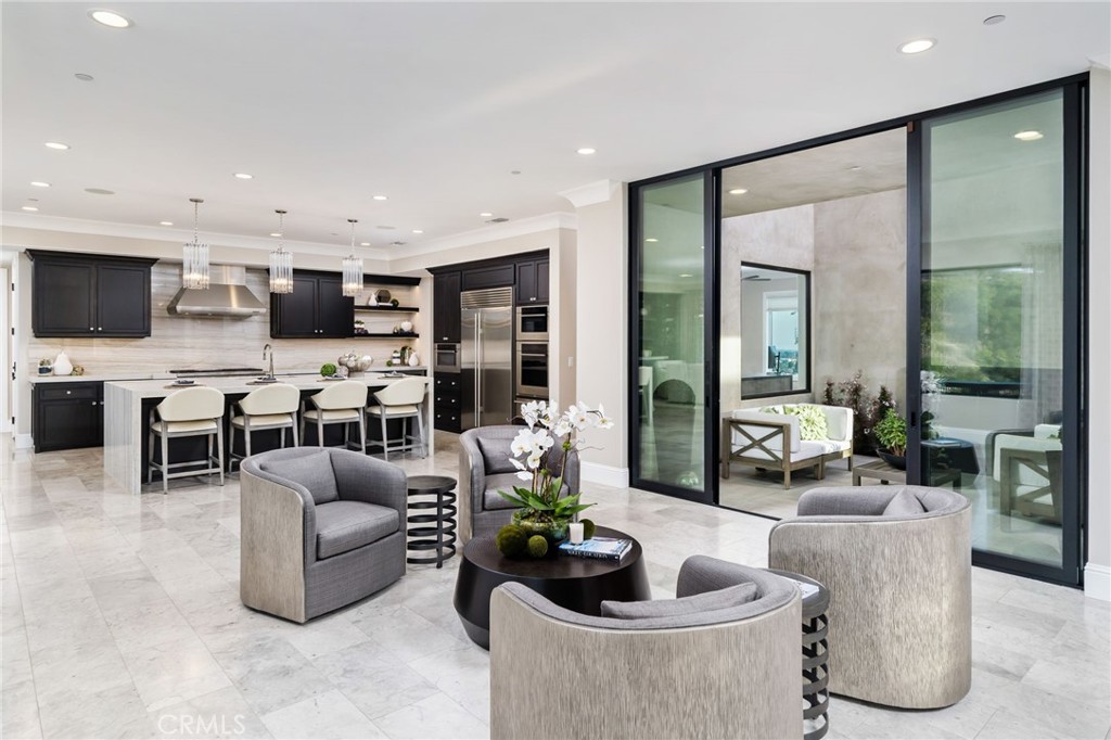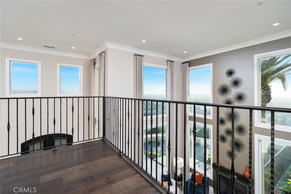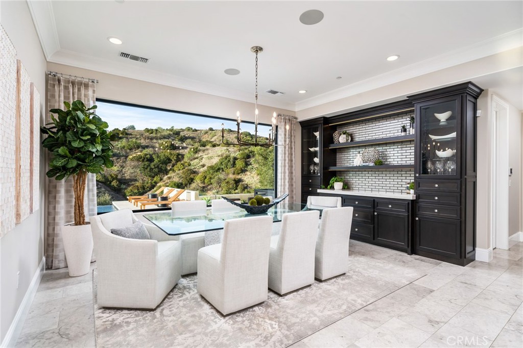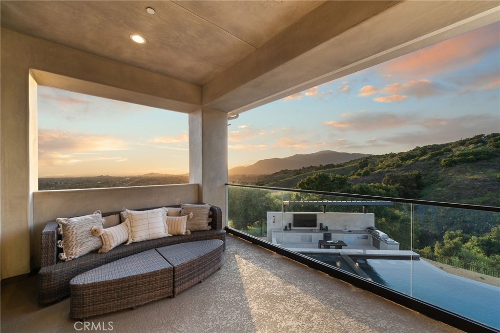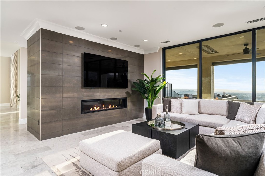 Nestled in the exclusive, gated community of Saddleback Crest Estates, this 2019 custom-built estate offers the ultimate in privacy, luxury, and breathtaking views. Perched high on a hillside, the home boasts panoramic vistas of downtown Los Angeles, the San Gabriel Valley, and the surrounding mountains. As you step through the double door entry, you're welcomed into a grand formal entry and living room featuring soaring 2-story ceilings, a beautiful fireplace, a dramatic spiral iron staircase, and incredible views. The family/great room is designed for seamless indoor-outdoor living, w/37' retractable glass doors framing the spectacular city lights & pool views. A cozy gas fireplace, glass-enclosed courtyard w/a soothing fountain, and a spacious seating area create an atmosphere of relaxation and sophistication. The chef-inspired kitchen is a dream, w/a large center island, stained cabinetry, quartzite counters, Wolf stainless appliances, built-in refrigerator, coffee bar, and custom walk-in pantry. The dining area is perfect for evening meals, w/custom built-in China cabinetry. Work from home in style in the private office, featuring built-in shelves and cabinetry. A spacious guest suite w/an en-suite bathroom and direct access to the pool area is also on the main level, along w/a powder room. Upstairs, the luxurious primary suite is a serene retreat w/an open beam ceiling, a private balcony w/breathtaking views, and a cozy fireplace. His & hers walk-in closets, a refreshment area w/Sub-Zero refrigerator, and lighting. The spa-like primary bath offers two separate vanities, an oversized soaking tub, and a walk-in shower w/multiple shower heads. A children's family room w/built-in desks provides the perfect space for play and study. The upper floor also features two additional bedroom suites, a fifth bedroom ideal for a gym, an extra powder room, and a dedicated laundry room. Step outside to your own private oasis, where the infinity-edge pool and oversized spa w/swim-up counter and Baja shelf are designed for relaxation and entertainment. The covered patio features a beverage counter w/refrigerator & ice maker, while the California room w/electronic shades offers a perfect spot for lazy afternoons. A fire pit & stunning fountain complete the outdoor space, while a cabana w/built-in BBQ, sink, warming drawer, and refrigerator provides the ultimate in outdoor dining and entertaining. The home also includes a 4-car attached garage and spacious driveway.