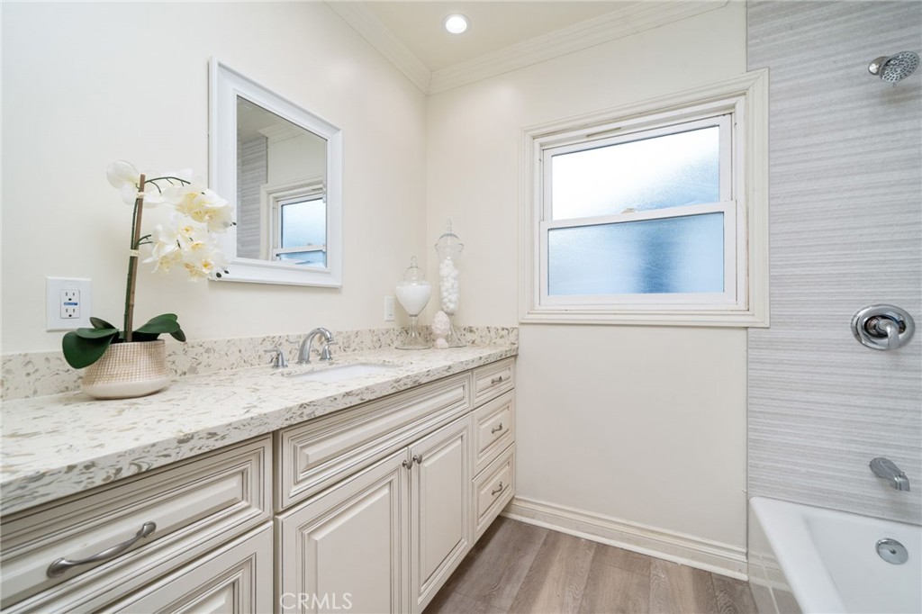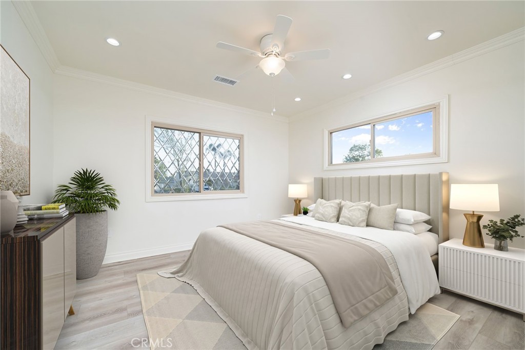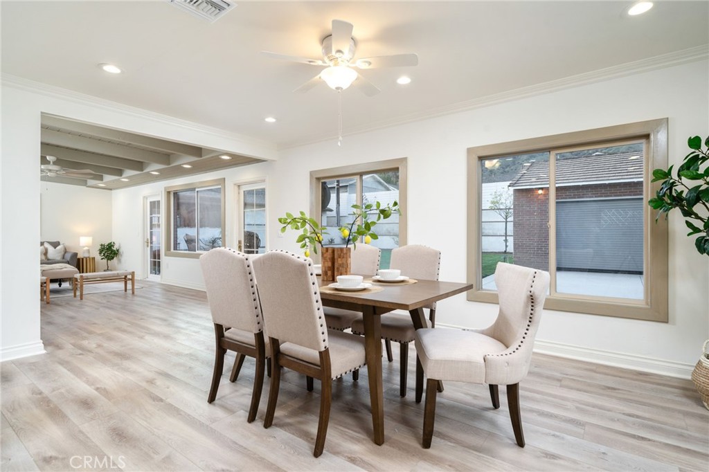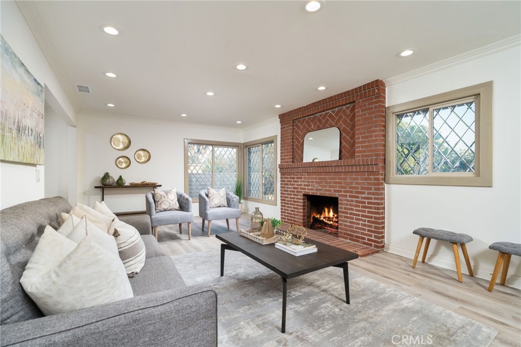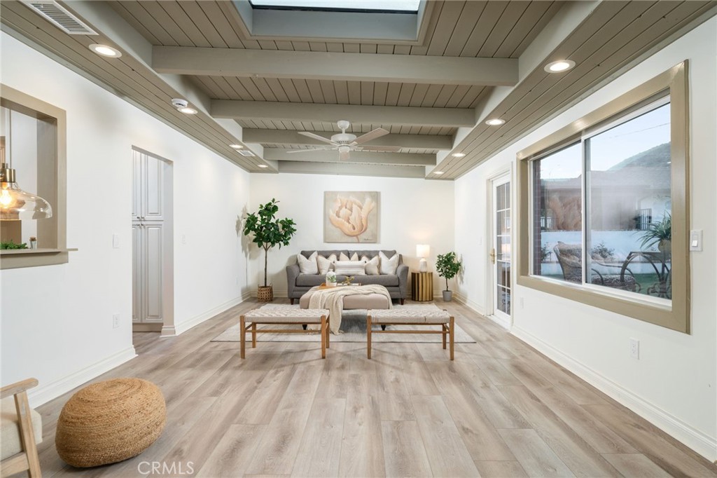 Nestled in the peaceful and desirable North Glendora neighborhood, this beautifully remodeled 3-bedroom, 2-bathroom single-story home with 1,849 of generous living space, and a 9,437 SF lot, offers picturesque mountain views and modern comforts. From the gorgeous front brick walkway and welcoming front porch to the lush front lawn, this home exudes curb appeal and charm. Step inside to an open and airy floor plan featuring a spacious living room adorned with stunning beveled windows and a cozy brick fireplace, creating the perfect setting for both relaxation and entertaining. The chef's kitchen is a true highlight, showcasing sleek quartz countertops, brand-new cabinets, and top-of-the-line stainless steel appliances. The adjacent dining area is ideal for family meals or gatherings. The expansive family room offers beautiful views of the backyard and mountains, with doors that open to a large, private yard - an ideal space for outdoor living, gardening, or entertaining. The generously sized bedrooms feature ample closet space and are complemented by two beautifully updated bathrooms. The hallway full bathroom offers a bathtub/shower combination and a charming vanity, while the second bathroom includes a spacious shower and a modern vanity. Additional features include inside laundry with extra storage, new laminated flooring throughout, copper plumbing, a new tankless water heater, a new heating and air conditioning system, and solar panels. The property also boasts fresh landscaping in both the front and backyard, enhancing the home's curb appeal. The expansive, private backyard provides a large lawn area perfect for a pool, children's play area, or simply enjoying the outdoors. A newly gated driveway offers extra parking, while the finished two-car detached garage is a true standout, featuring vaulted ceilings, and ample space for a lift system - perfect for any car enthusiast. Located within the highly sought-after Glendora School District, and just a short walk to top-rated schools and the charming Glendora Village, this home offers the perfect combination of tranquility, modern updates, and convenience. Don't miss the opportunity to make this stunning home yours - schedule a showing today!