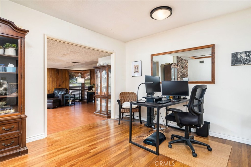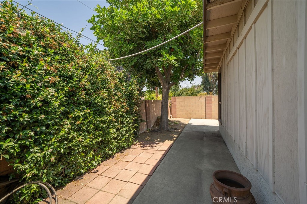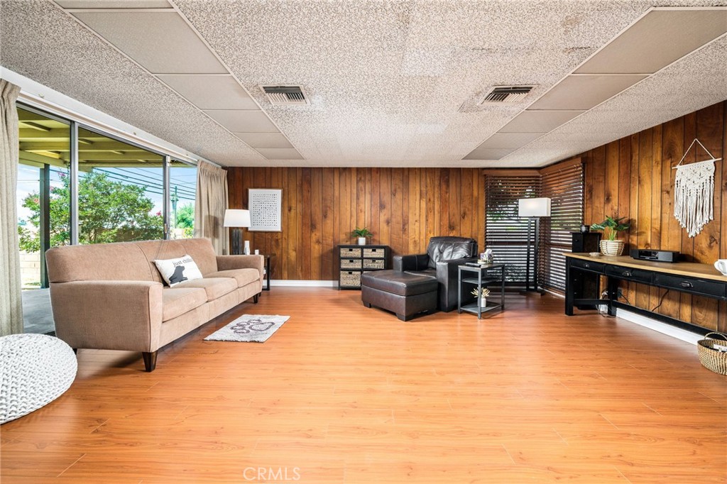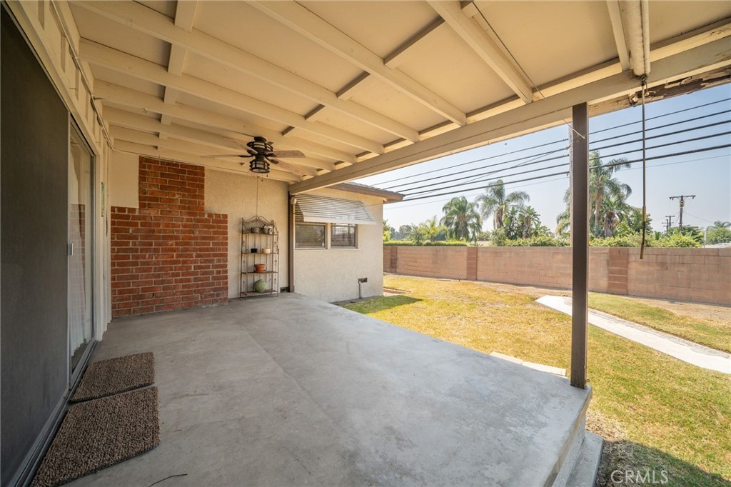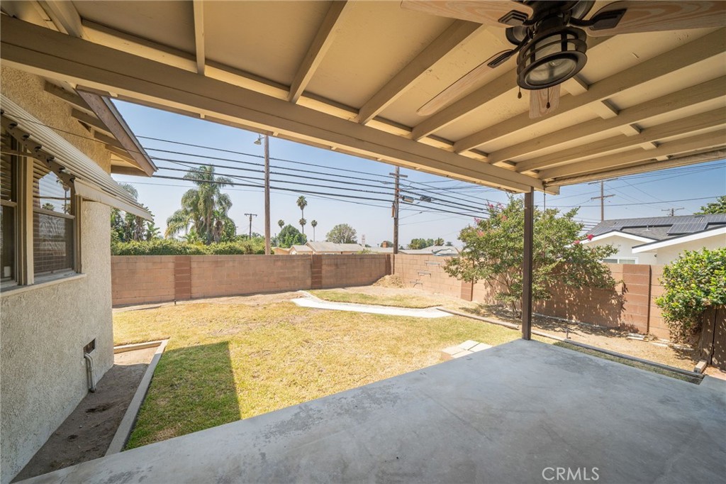 Located at the end of a private cul-de-sac street in the desirable Charter Oak area of Covina, this spacious three bedroom, 2 bathroom home offers 1,600 SF of living space on a flat 7,762 SF lot. The charming front porch welcomes you into the large formal living room with brick fireplace, family room with slider door to covered patio, spacious kitchen with eating area, built-in desk area, gas cooktop, double ovens, and gorgeous front yard views. Inside laundry room adjacent to kitchen with ample storage. Primary suite with spacious closets and slider door to covered patio and a primary bathroom with shower. Two additional bedrooms and a full hallway bathroom complete this beautiful family home. Upgrades include: refinished hardwood floors, laminate floors in the family room, some dual pane windows, copper plumbing, 200 Amp electrical panel, and solar panels. Backyard features lawn area, two covered patios, and block walls. Two car attached garage and ample parking. Located in the desirable Charter Oak School District. This home offers a wonderful opportunity to buy in a great neighborhood!