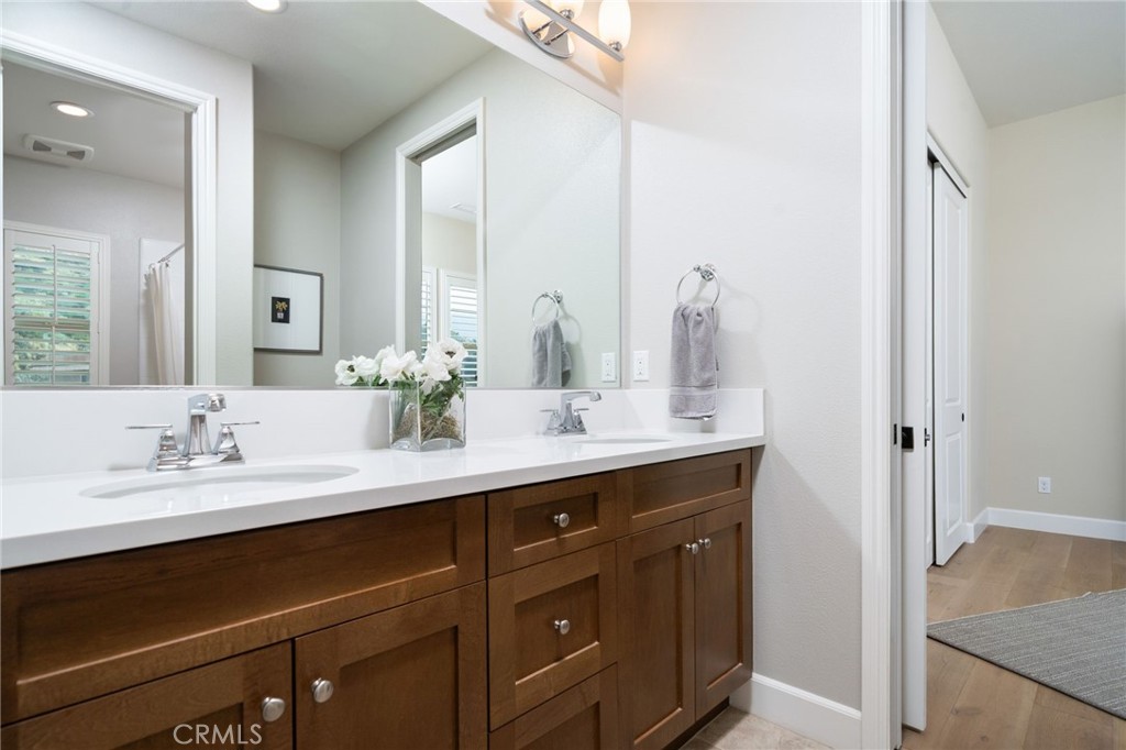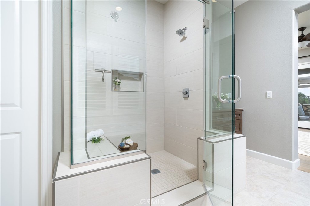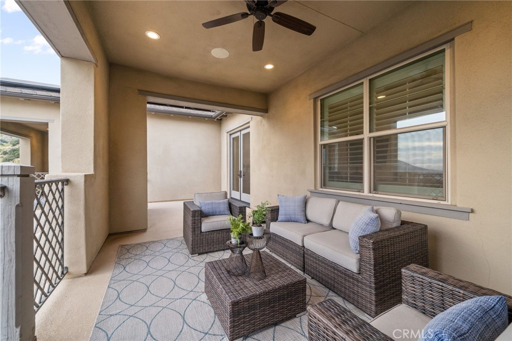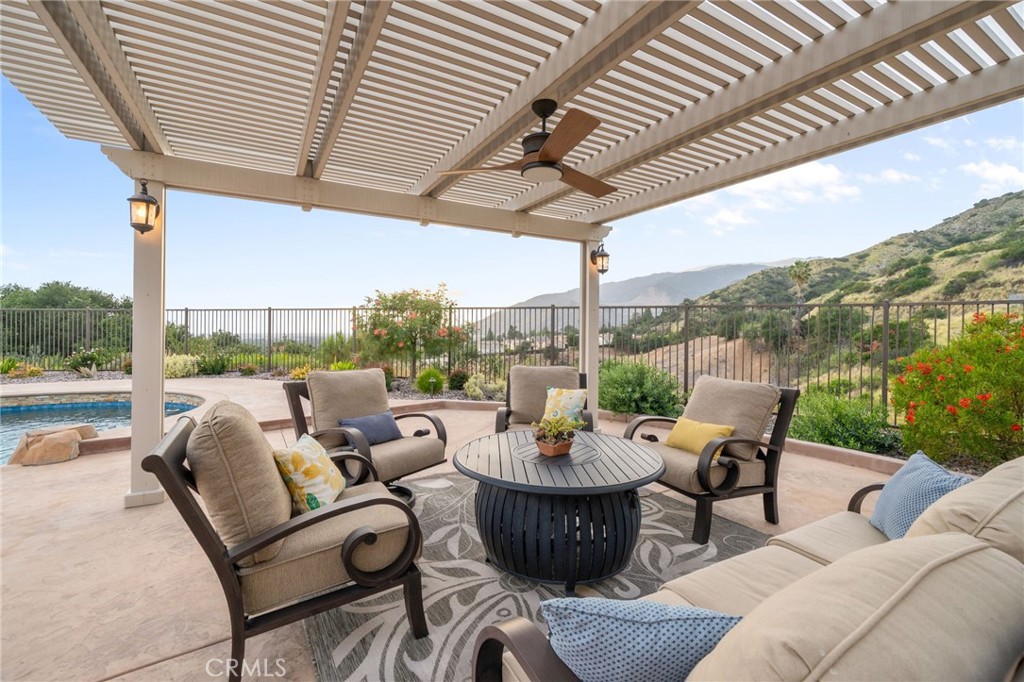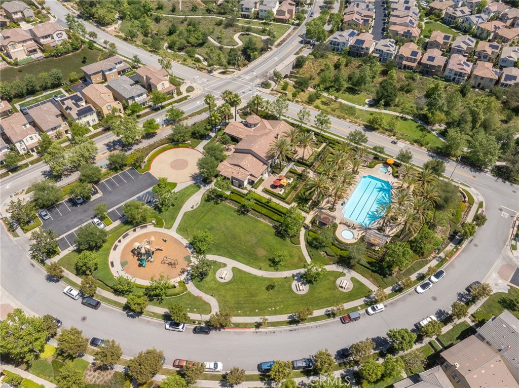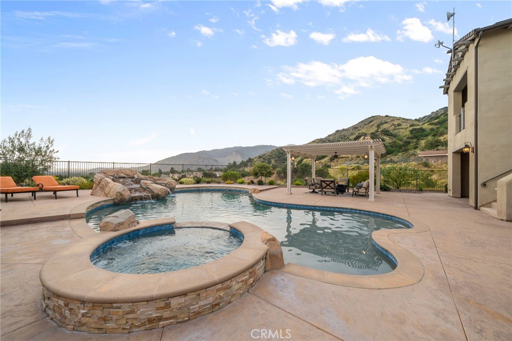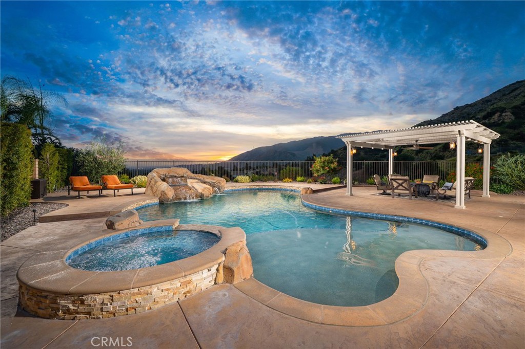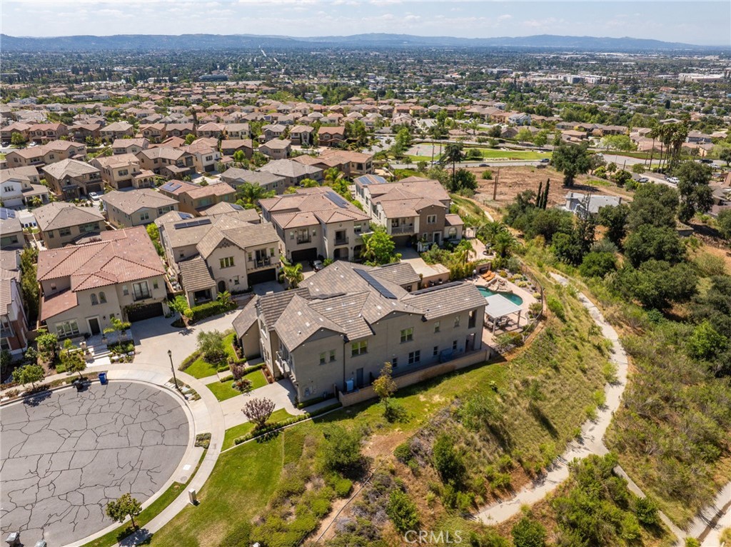 Panoramic city lights and mountain views await in this exceptional Aster Heights home, situated at the end of a quiet cul-de-sac in the desirable Rosedale community. This stunning residence offers 5,147 square feet of refined living space on an expansive 11,099 SF premium view lot, capturing breathtaking vistas of downtown Los Angeles and the San Gabriel foothills. Upon entry, you are greeted by a dramatic 21-foot foyer ceiling, an elegant staircase, and an abundance of natural light. The formal living room showcases a beautiful fireplace and soaring ceilings that frame the scenic surroundings. The expansive great room seamlessly blends indoor and outdoor living through bi-fold sliding doors that open to the backyard oasis. The gourmet kitchen is a chef's dream, with a large center island, quartz countertops, Kitchen Aid stainless steel appliances, an oversized walk-in pantry with potential for a secondary prep kitchen, and a spacious formal dining area. The main level offers a highly sought-after secondary primary suite complete with a luxurious bathroom, walk-in closet, and a private covered patio, perfect for multi-generational living or guest accommodations. The main level also offers a mudroom, powder room, and direct access to the oversized garage with custom cabinetry and storage. Upstairs, enjoy a versatile loft and a spacious bonus room with access to a private balcony. The luxurious primary suite offers its own private balcony, walk-in closet, and a spa-inspired bathroom with dual vanities, soaking tub, and oversized shower. Additional upstairs features include an en-suite bedroom, two additional bedrooms connected by a Jack-and-Jill bathroom, and a well-appointed laundry room with ample storage and sink. Upgrades include new upstairs hardwood flooring, fully paid solar, dual Tesla Powerwalls, two tankless water heaters, a whole-house automation system, and an integrated audio system for both indoor and outdoor entertaining. Step outside to your private backyard retreat, complete with a sparkling pool and spa with rock waterfall, built-in BBQ with refrigerator and sink, covered patio, spacious deck, and a pergola with ambient lighting, all set against stunning panoramic views. The Rosedale community offers resort-style amenities including a junior Olympic-size pool and spa, fitness center, recreation center, BBQs, basketball court, scenic walking trails, & parks. Conveniently located near the Gold Line, Citrus College,& Azusa Pacific University.