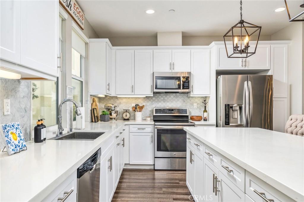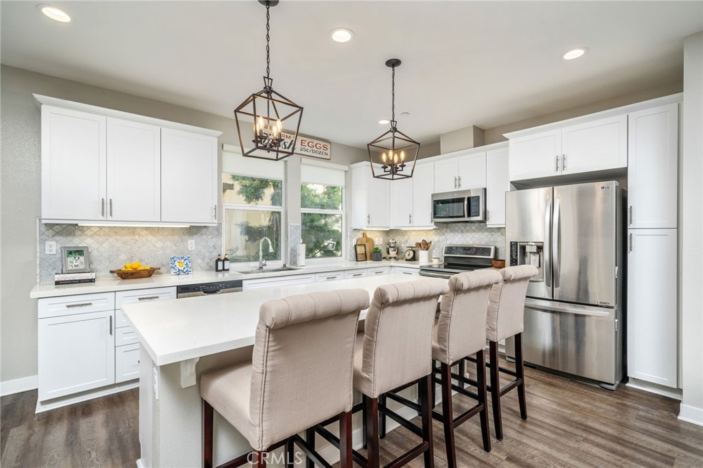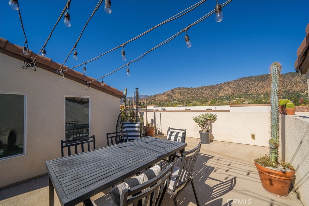 Welcome to this beautifully appointed 3-bedroom, 4-bathroom condominium located in the prestigious, gated community of Foothill Collection in North Glendora. Ideally situated just minutes from the charming Glendora Village, this home offers the perfect blend of privacy and convenience, with easy access to quaint shops, restaurants, top-rated schools, local parks, and the nearby Gold Line Station. This immaculate tri-level home boasts a thoughtful and open floor plan, featuring a lower level welcoming living room perfect for entertaining, a convenient powder room, and direct access to the attached two-car garage. A second level offers a bright, spacious kitchen with white cabinetry, quartz countertops, and stainless steel appliances, with included refrigerator. A generous walk-in pantry provides ample storage, while the adjacent dining area and expansive great room create a seamless space for relaxing and gatherings. A second powder room adds extra convenience on this level. The upper level private primary suite features a spacious bedroom with a large walk-in closet, and a luxurious en-suite bathroom with a dual-sink vanity and an oversized shower. Two additional well-sized bedrooms share a full hallway bathroom. For added convenience, the laundry area includes a stackable washer and dryer. Step outside to the rooftop deck, offering breathtaking views of the surrounding mountains, an ideal spot for entertaining or relaxing while enjoying the serene scenery. Additional features include solar panels for energy efficiency and a variety of community amenities including a pool and spa, outdoor cooking area, playground, bocce ball court, and a dog park, perfect for an active and social lifestyle. This beautiful home offers a perfect blend of comfort, convenience, and luxury living, making it the ideal choice for those looking to call North Glendora home.