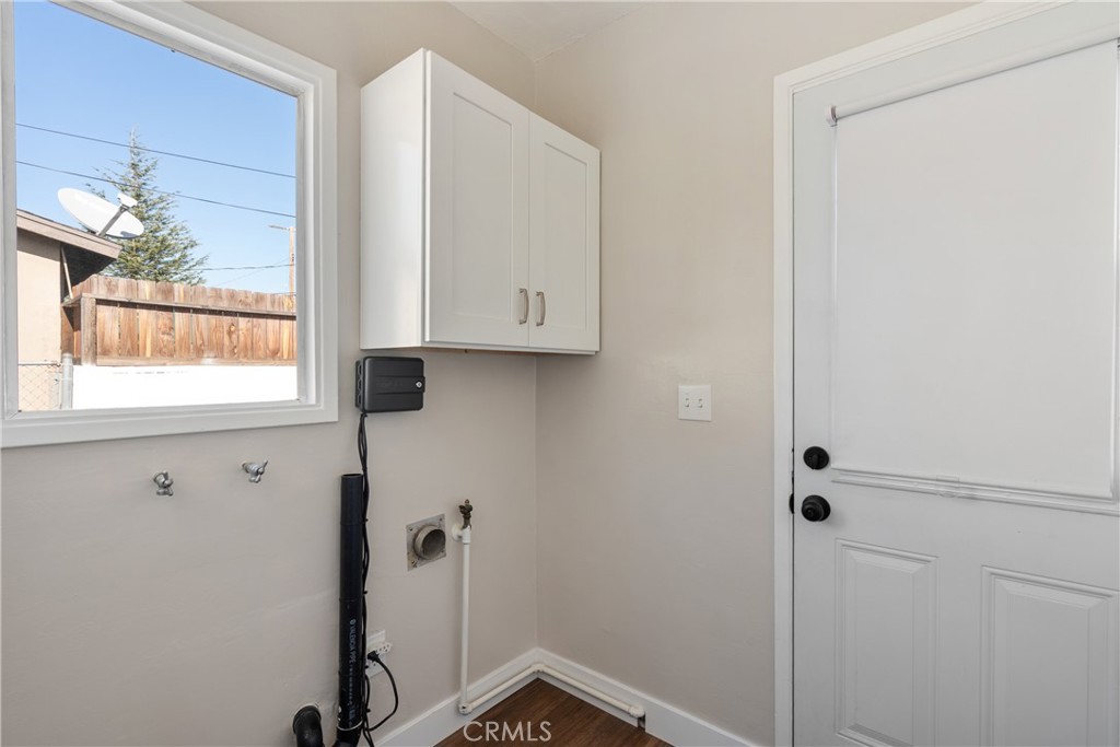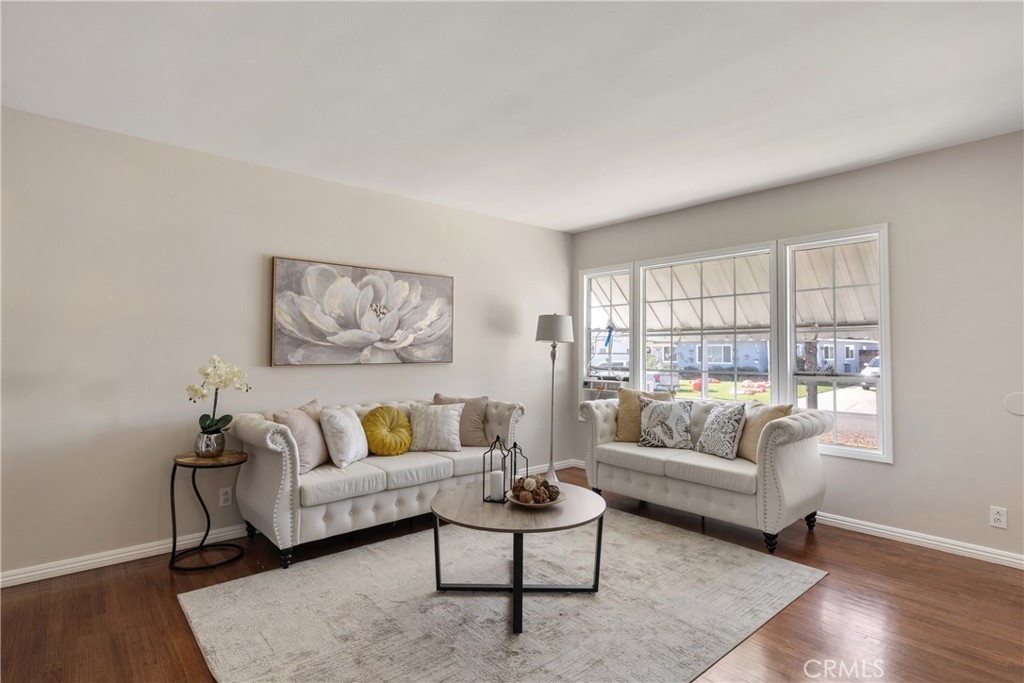 Step inside to a bright and cozy living room filled with natural light from large windows, complemented by warm wood flooring that adds character and charm. The kitchen is a standout, featuring crisp white cabinetry, updated fixtures, and a dining area that makes it an ideal space for cooking and gathering. A nearby laundry area and second bathroom add everyday convenience for both guests and family.